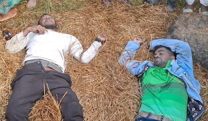 স্থানীয় সুত্রে জানা যায়, রবিবার সকাল আনুমানিক ৭টায় ফসলি জমিতে দুটি লাশ পরে আছে শুনতে পেয়ে স্থানিয়রা এসে দেখতে পায় দুটি লাশ পরে আছে। ধানক্ষেতের পাশের একটি খালি জায়গায় খড়ের ওপর হয়ে পড়ে ছিল লাশ দুটি।