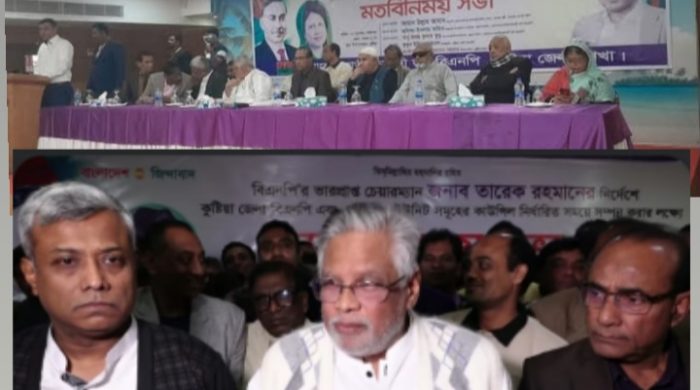 বাংলাদেশ জাতীয়তাবাদী দল বিএনপির ভারপ্রাপ্ত চেয়ারম্যান তারেক রহমান এর নির্দেশে কুষ্টিয়া জেলা বিএনপি এবং জেলা কমিটির আওতাধীন সকল ইউনিট সমুহের কাউন্সিল নির্ধারিত সময়ে সম্পন্ন করার লক্ষ্যে কুষ্টিয়া জেলা বিএনপির মতবিনিময় সভা অনুষ্ঠিত। ১০ নভেম্বর বেলা ১১টার সময় কুষ্টিয়া দিশা টাওয়ারের সম্মেলন কক্ষে এই সভা অনুষ্ঠিত হয়। অনুষ্ঠানে প্রধান অতিথি হিসেবে উপস্থিত ছিলেন আমান উল্লাহ আমান এবং বিশেষ অতিথি হিসেবে উপস্থিত ছিলেন অনিন্দ্য ইসলাম অমিত,বাবু জয়ন্ত কুমার কুন্ডু । কুষ্টিয়া জেলা বিএনপির আহবায়ক কুতুব উদ্দিন আহমেদ এর সভাপতিত্বে অনুষ্ঠিত সভা পরিচালনা করেন, জেলা বিএনপির আহবায়ক কমিটির সদস্য সচিব প্রকৌশলী জাকির হোসেন সরকার । প্রধান অতিথির বক্তব্যে আমান উল্লাহ বলেন, বিডিআর, ছাত্রজনতা এবং গণহত্যার দায়ে আইন অনুযায়ী বিচারের মাধ্যমে আদালতই শেখ হাসিনা কে দেশে আনবে