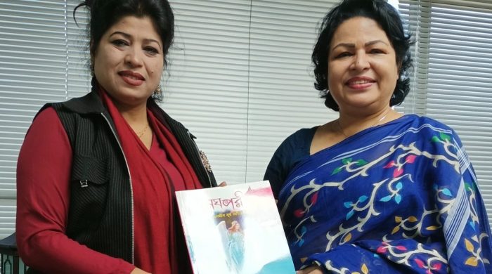প্রিয়াংকার লেখা ছোটদের বই “মেঘ পরী” হাতে দিতেই মধুর হাসি দিয়ে আফরোজা হেলেন বললেন সভাপতি হবার পর এটাই প্রথম উপহার পেলাম।