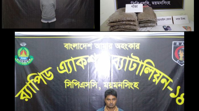 ময়মনসিংহ বিভাগ, নান্দাইল উপজেলা, কানারামপুর বাজারে মাদক বিরোধী বিশেষ অভিযান পরিচালনা করে আনুমানিক ৩,৬০,০০০/- টাকা মূল্যেমানের ১৭ কেজি গাঁজা সহ ০২ জন কুখ্যাত মাদক ব্যবসায়ী’কে আটক করেছে র্যাব-১৪।