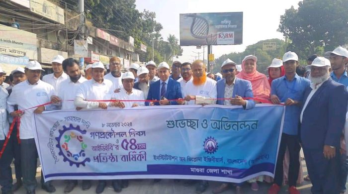 মাগুরায় ইনস্টিটিউশন অব ডিপ্লোমা ইঞ্জিনিয়ার্স বাংলাদেশ (আইডিইবি)’র ৫৪ তম প্রতিষ্ঠা বার্ষিকী ও গণপ্রকৌশল দিবস সম্পন্ন হয়েছে।উক্ত অনুষ্ঠানে  প্রধান অতিথি হিসেবে উপস্থিত ছিলেন জেলা প্রশাসক মোঃ অহিদুল ইসলাম।মঙ্গলবার সকালে আইডিইবি মাগুরা জেলা নির্বাহী কমিটির উদ্যোগে এ উপলক্ষে আইডিবি কার্যালয় ভায়না থেকে এক বর্ণাঢ্য র‌্যালি বের করা হয়।র‌্যালিটি ভায়না থেকে শুরু কর শহরের গুরুত্বপূর্ণ সড়ক প্রদক্ষিণ করে ভায়নার মোড়ে এসে শেষ হয়।পরে এক আলোচনা সভা অনুষ্ঠিত হয়।