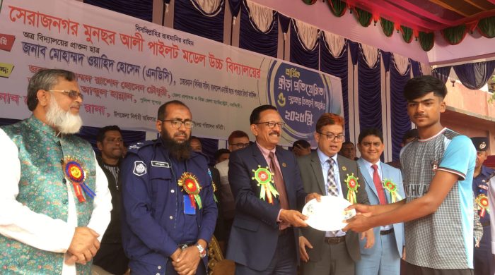 নরসিংদীর রায়পুরা উপজেলার সেরাজনগর এম এ পাইলট মডেল উচ্চ বিদ্যালয়ের বার্ষিক ক্রীড়া প্রতিযোগিতা ও পুরস্কার বিতরণী অনুষ্ঠিত হয়েছে। শুক্রবার সকালে ব্যাপক প্রস্ততি নিয়ে বর্ণীল সাজে আনন্দঘন মনোরম পরিবেশে জাতীয় সংগীত এর সাথে সাথে জাতীয় পতাকা উত্তোলনের মধ্যদিয়ে এই ক্রীড়া প্রতিযোগিতা শুরু হয়।পরিচালনা পরিষদের সভাপতি উপজেলা নির্বাহী কর্মকর্তা মাসুদ রানার সভাপতিত্বে প্রধান অতিথি হিসেবে উপস্থিত ছিলেন বাংলাদেশ এনার্জি এন্ড পাওয়ার রির্সাচ কাউন্সিল এর চেয়ারম্যান(সিনিয়র সচিব)মোহাম্মদ ওয়াহিদ হোসেন।