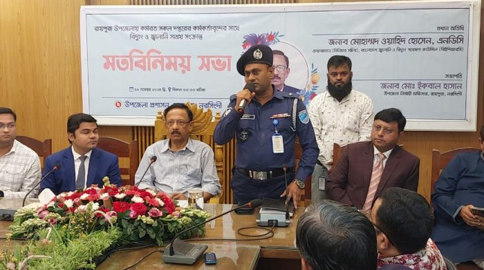 রায়পুরায় বিদ্যুৎ সাশ্রয়কে কেন্দ্র করে প্রশাসন ও রাজনৈতিক নেতাদের সাথে মতবিনিময় সভা