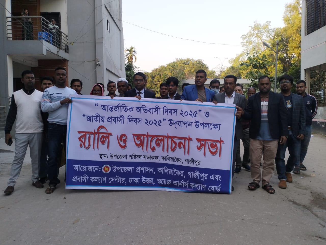 গাজীপুরের কালিয়াকৈর উপজেলায় আন্তর্জাতিক অভিবাসী দিবস ও জাতীয় প্রবাসী দিবস ২০২৫ উদযাপন উপলক্ষে র্যালি ও আলোচনা সভা অনুষ্ঠিত হয়েছে।