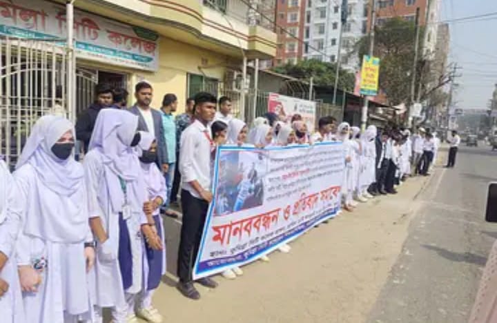 কুমিল্লা সিটি কলেজের অধ্যক্ষকে লাঞ্ছিতের প্রতিবাদে মানববন্ধন
