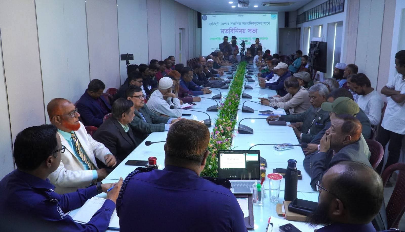 নরসিংদীতে "প্রিন্ট ও ইলেকট্রনিক মিডিয়ার সাংবাদিকবৃন্দের সাথে মতবিনিময় করেন পুলিশ সুপার।