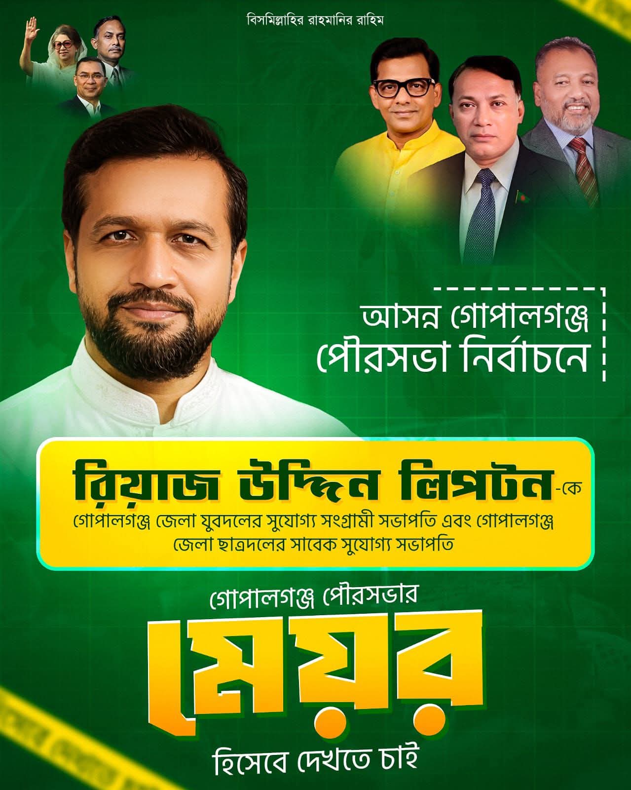 নেতৃত্ব ও সংহতি: গোপালগঞ্জ পৌরসভা নির্বাচনে মেয়র প্রার্থী হিসেবে আলোচনার কেন্দ্রে রিয়াজ উদ্দিন লিপটন