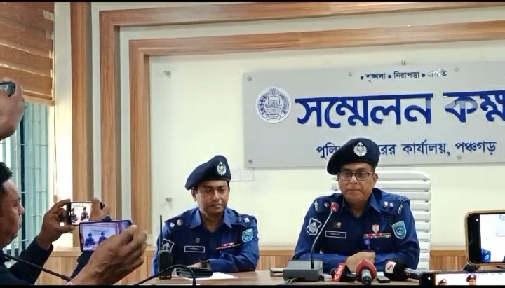 পঞ্চগড়ে ডাকাতির ঘটনার মুল রহস্য উদঘাটনে পুলিশ সুপারের প্রেস বিফিং,