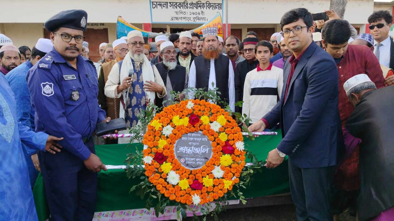 মরহুমের জানাজার নামাজ বাদ আছর চান্দলা কে বি স্কুল এন্ড কলেজ মাঠে রাষ্ট্রীয় মর্যাদায় অনুষ্ঠিত হয়েছে। ব্রাহ্মণপাড়া উপজেলা নির্বাহী অফিসার মো: ছামিউল ইসলাম রাষ্ট্রের পক্ষে সালাম গ্রহণ করেন। এ সময় জাতীয় পতাকা দিয়ে আচ্ছাদিত মরহুমের মরদেহে পুষ্প মাল্য অর্পণ করা হয়।