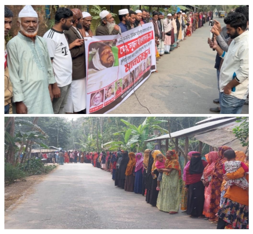 বাউফলে সুজন হত্যার বিচারের দাবীতে এলাকাবাসীর মানববন্ধন!