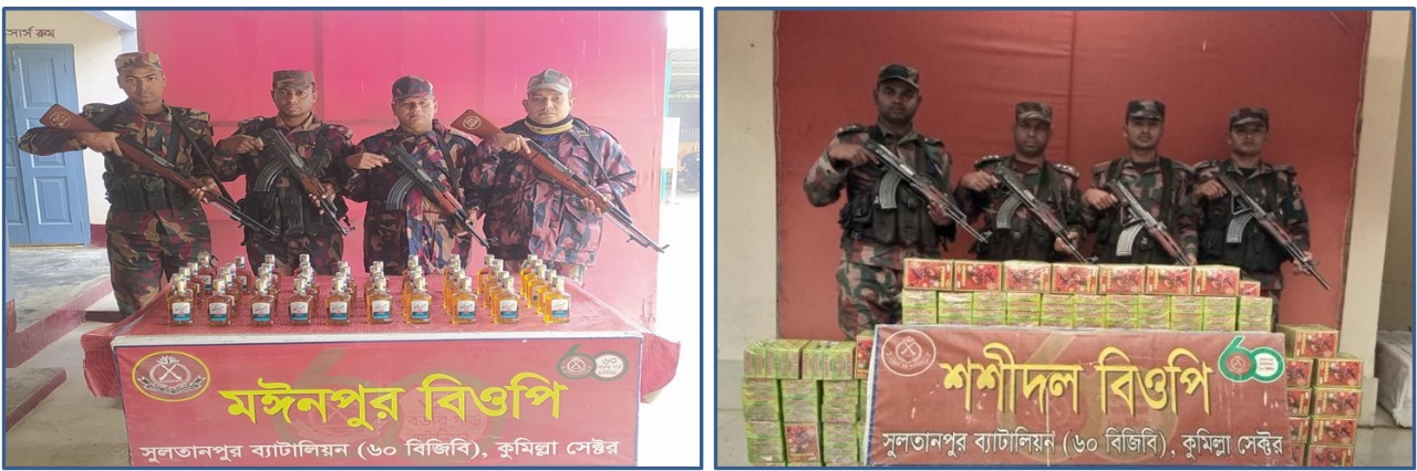 ব্রাহ্মণপাড়ায় বিপুল পরিমাণ মাদক ও বিভিন্ন প্রকার অবৈধ মালামাল জব্দ