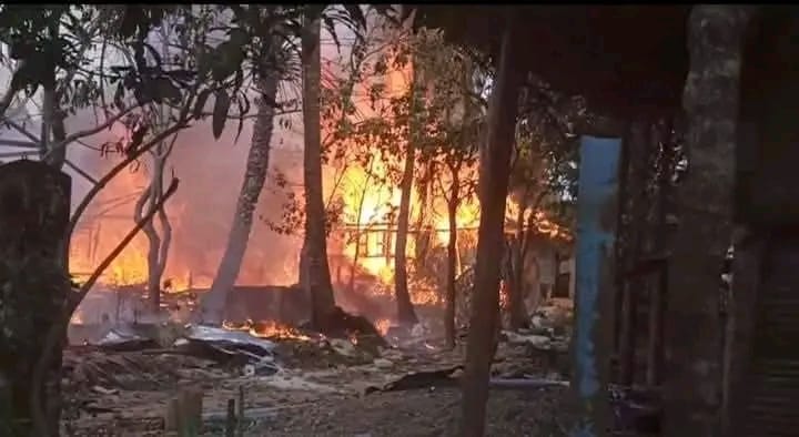রাখাইন সন্ত্রাসী গোষ্ঠী আরাকান আর্মি (এএ) বুথিডাংয়ে রোহিঙ্গাদের বাড়িঘর ও ভবন পুড়িয়ে দিয়েছে