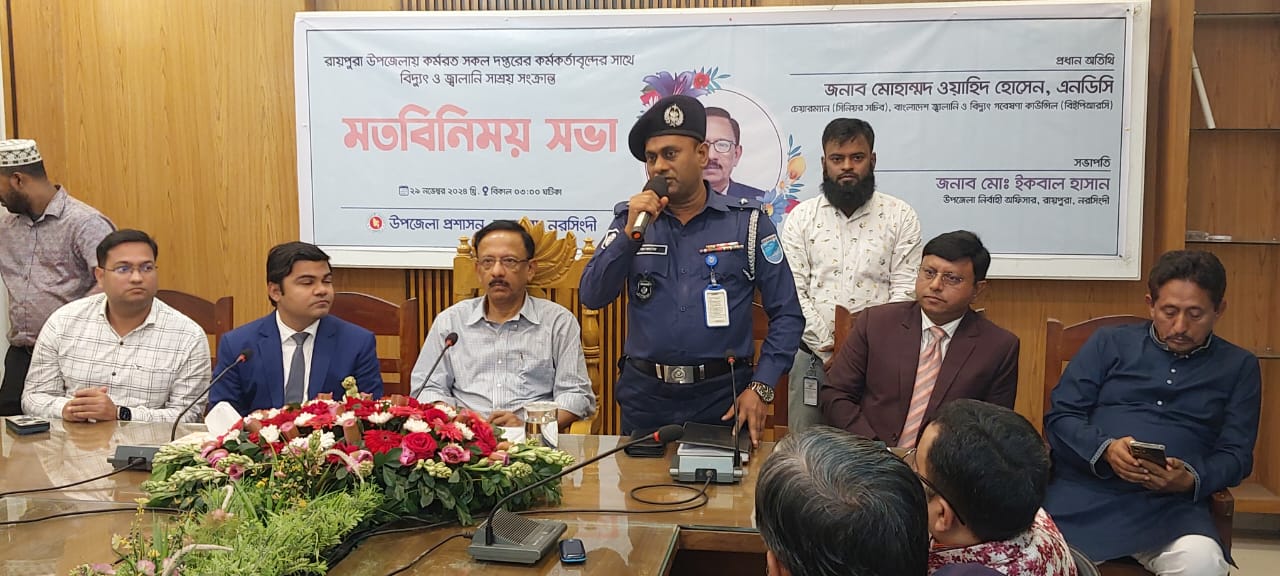 রায়পুরায় বিদ্যুৎ সাশ্রয়কে কেন্দ্র করে প্রশাসন ও রাজনৈতিক নেতাদের সাথে মতবিনিময় সভা