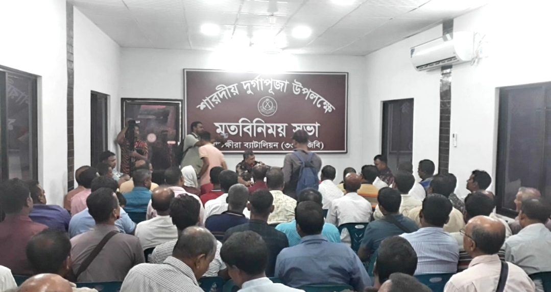 শারদীয় দুর্গাপূজা উপলক্ষ্যে সীমান্তবর্তী পূজামন্ডপ সমূহে বিজিবি অধিনায়ক কর্তৃক অংশীজনদের সাথে মতবিনিময় সভা