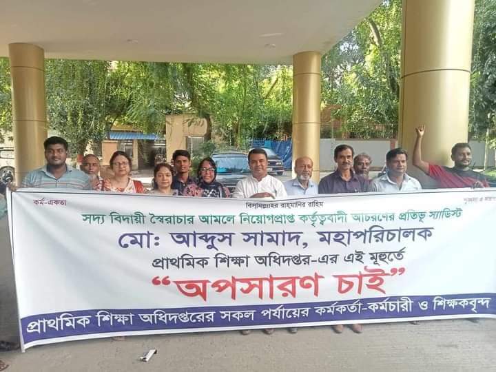 সহকর্মীদের সঙ্গে অশোভন ও কলোনীযুগের আচরন সহ নানা অনিয়মে অভিযুক্ত ও বিতর্কিত প্রাথমিক শিক্ষা অধিদপ্তরের মহাপরিচালক আব্দুস সামাদের পদত্যাগের দাবিতে বিক্ষোভ ও মানববন্ধন করেছেন অধিদপ্তরের কর্মকর্তা–কর্মচারীরা। এ সময় তারা ডিজিকে পদত্যাগে করতে ২৪ ঘণ্টার অল্টিমেটাম দেন