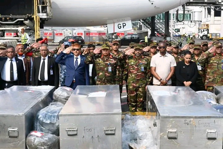 সুদানে জাতিসংঘ শান্তিরক্ষা মিশনে সন্ত্রাসী ড্রোন হামলায় শাহাদাত বরণকারী বাংলাদেশ সেনাবাহিনীর শান্তিরক্ষীদের মৃতদেহ দেশে প্রত্যাবর্তন।