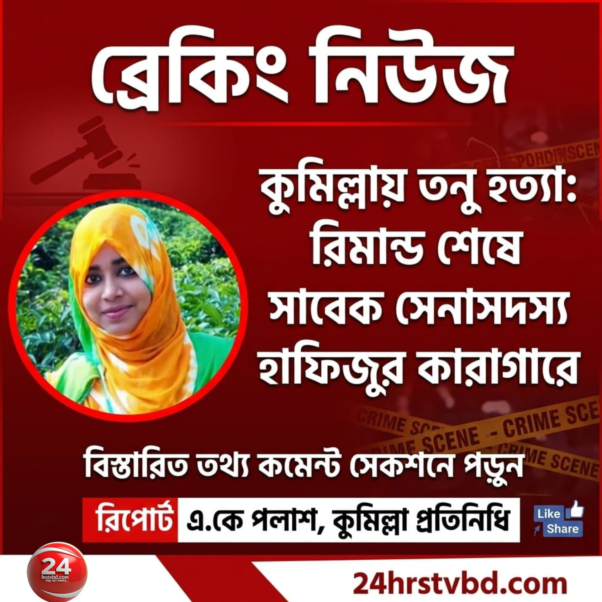 কুমিল্লায় তনু হত্যা মামলায় রিমান্ড শেষে কারাগারে সাবেক সেনাসদস্য হাফিজুর
