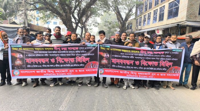 দিপু হত্যার প্রতিবাদে কালিয়াকৈরে মানববন্ধন ও বিক্ষোভ মিছিল