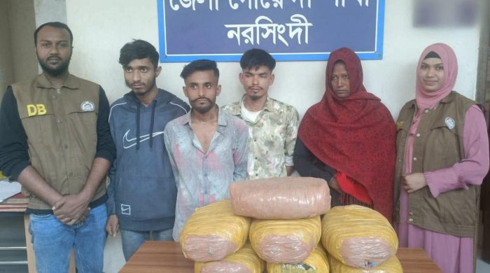 নরসিংদীর শিবপুরে ১৪ কেজি গাজা সহ ৪জন মাদক ব্যবসায়ী আটক